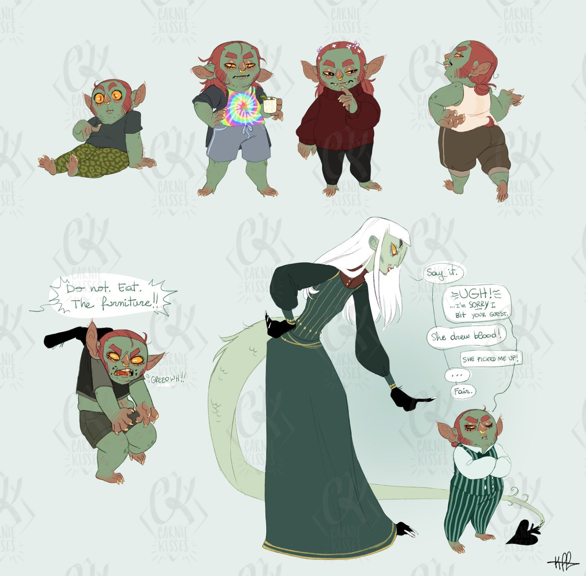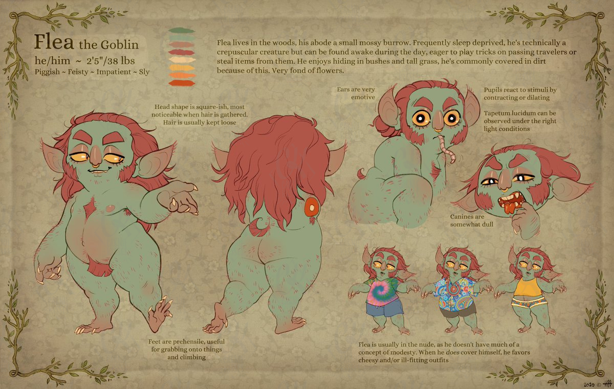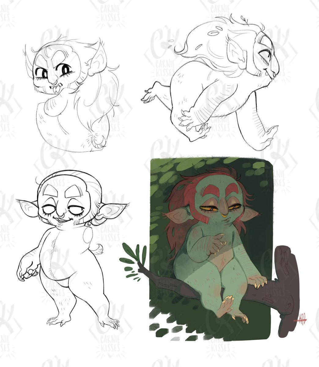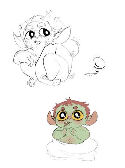 Goblins this small are arboreal usually, but Flea is too fat and lazy to climb trees so hes fossorial instead. Love doing little diagrams like these