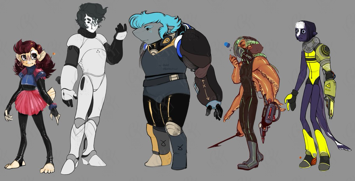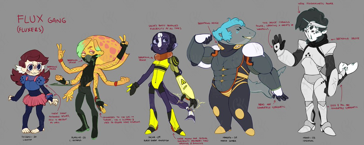 not gonna provide much context rn besides this is the main criminal gang of the story. Left, a pic from '15/'16 for comparison, youll have to excuse how ugly it is, never finished it. Im pretty happy with the redesigns (right), i think theyre more focused wrt shapes and colors