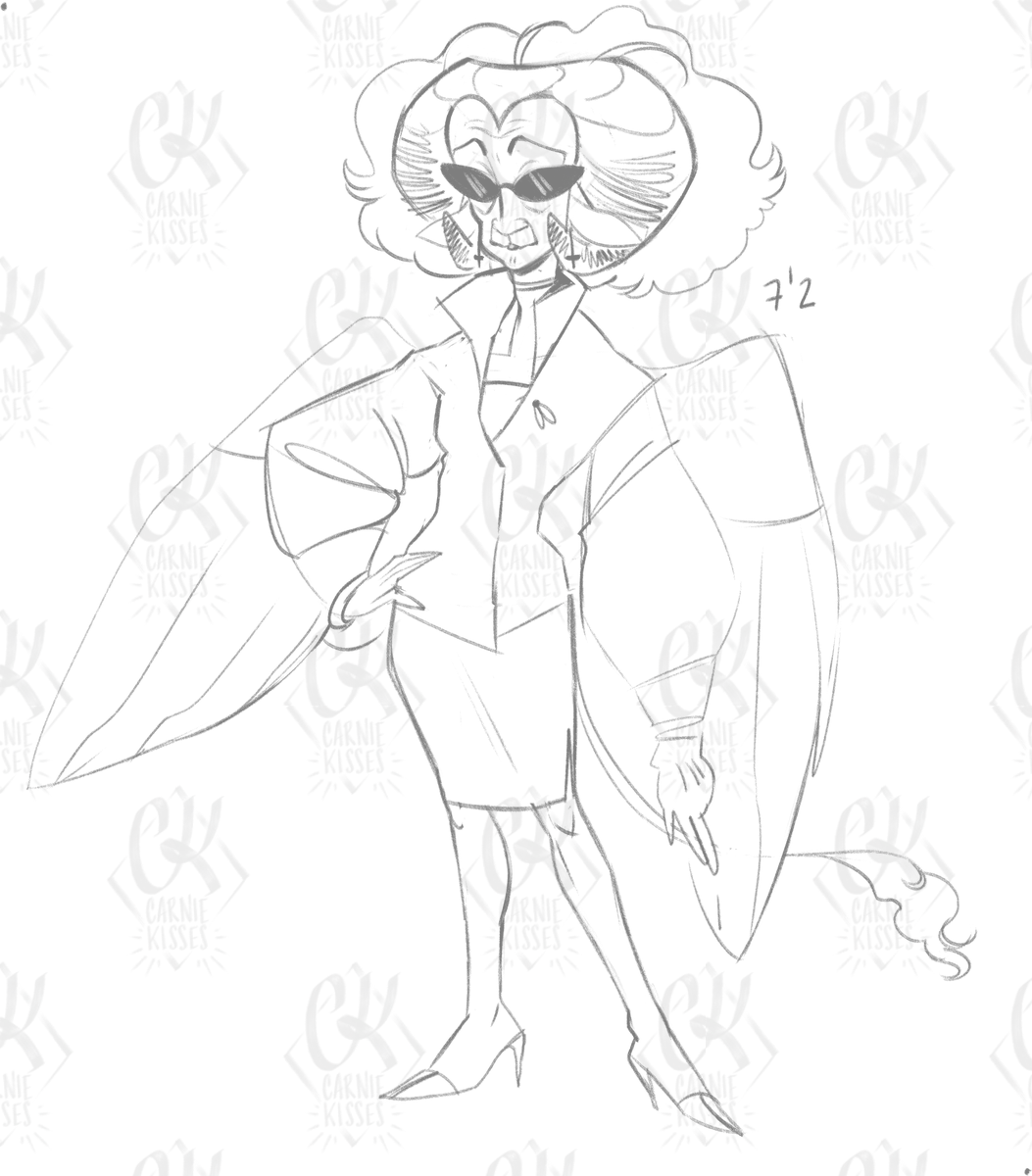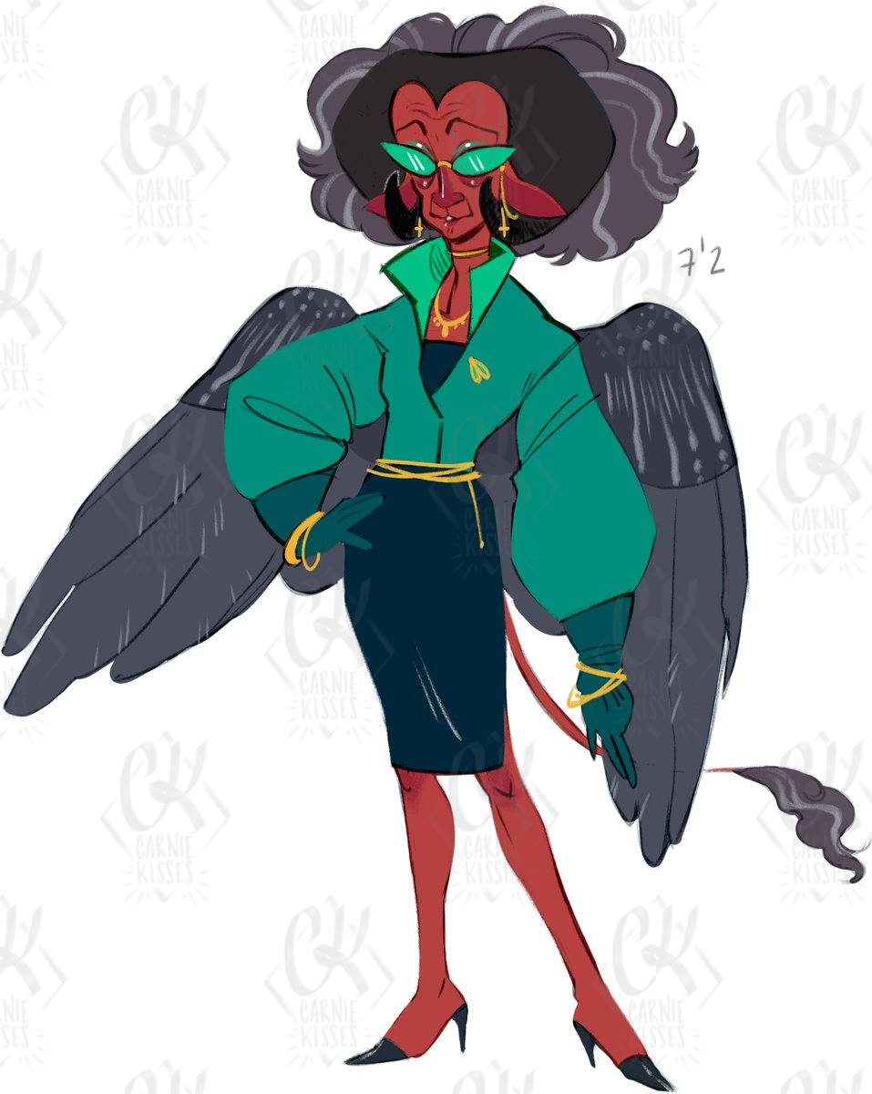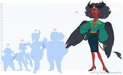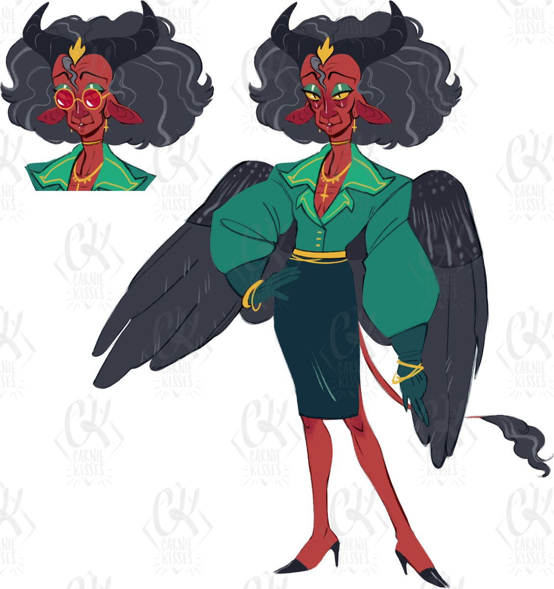 i think shes finalized, changed the outfit a bit and the horns a bunch bc they were uggy and made no sense + a height chart because theyre fun to look at imo (she is tall)