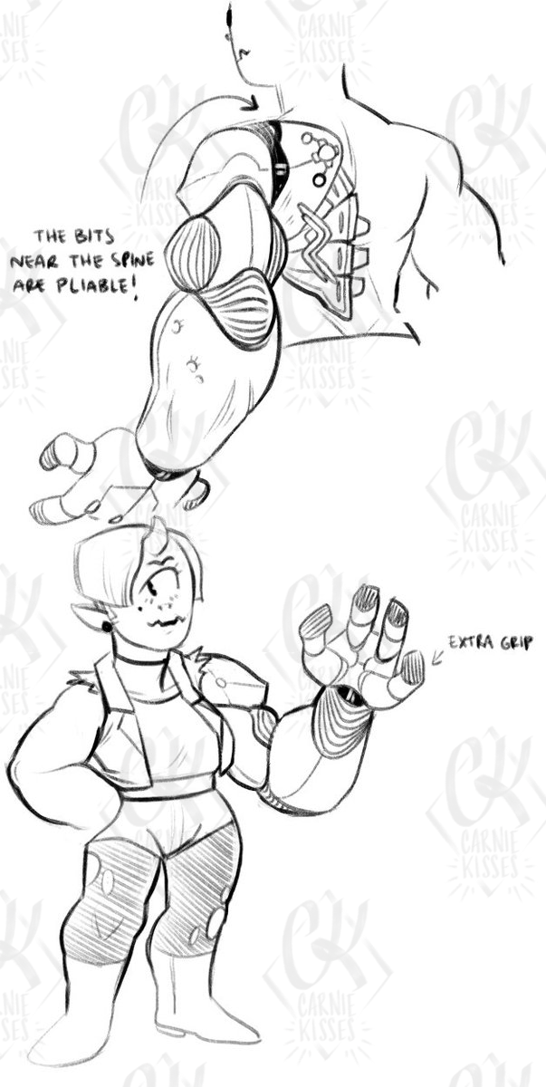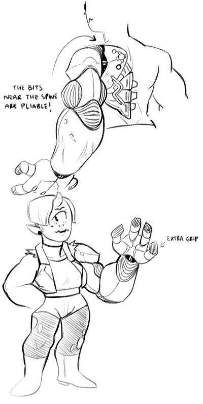 fickle bitch that i am i redesigned her arm because i didnt like it much lol. Wanted it to mirror the flesh arm a bit, especially the upper part