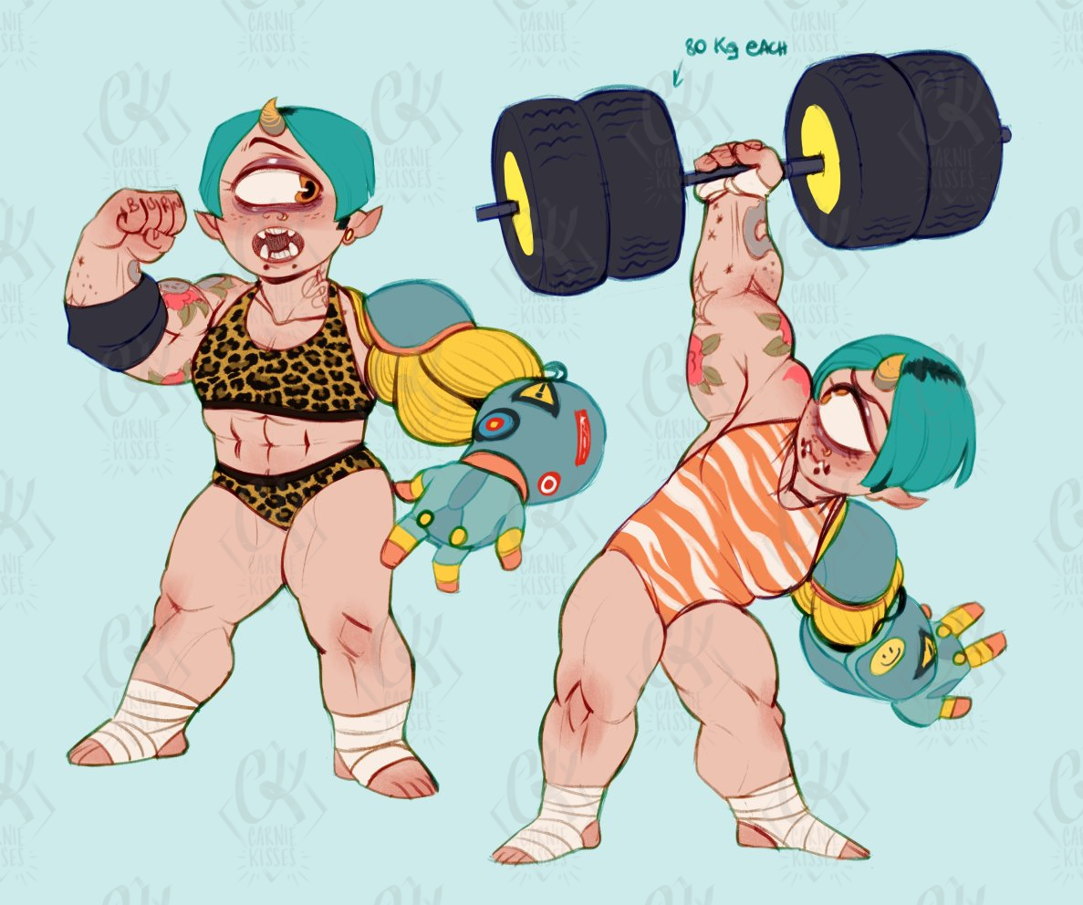 one solution: give them big fuck off arms and impish proportions (muscle form is taller than basal form)