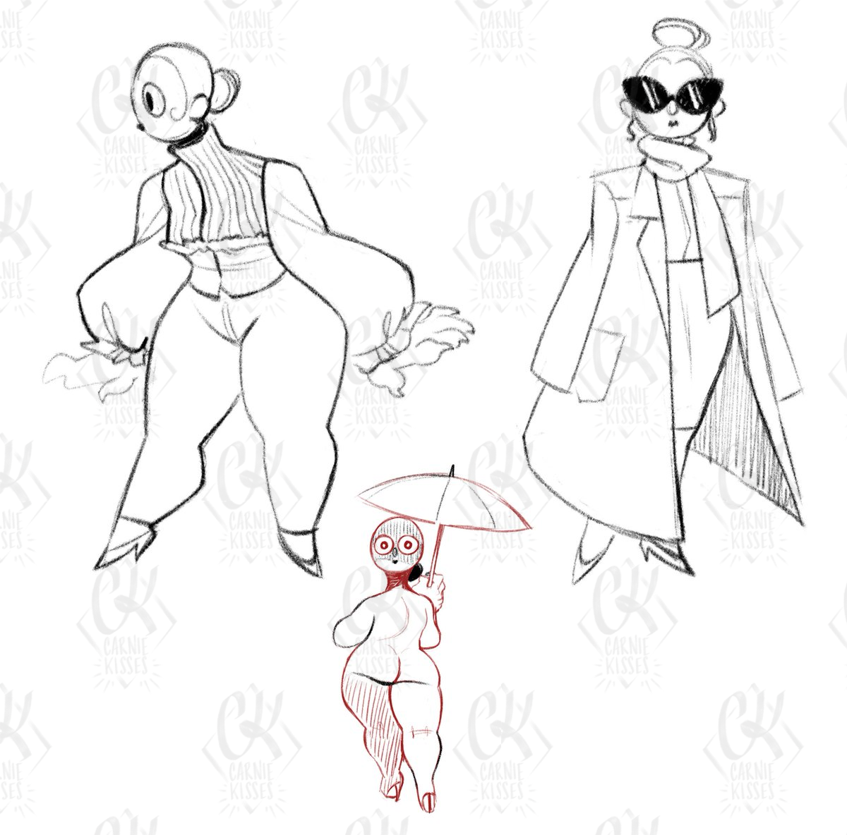 old doodles, two attempts at giving her a couple nice outfits + a pose i wanted to paint but never did