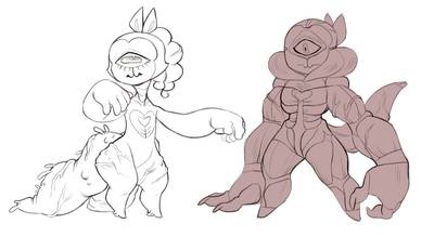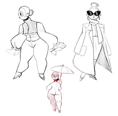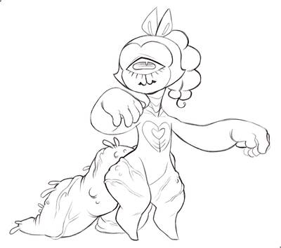 touching up Pollitech's (full name Pollination Technician #4892) design a bit and my excuse for their lower half being fucking massive is that they're an alien with weird alien fat deposits