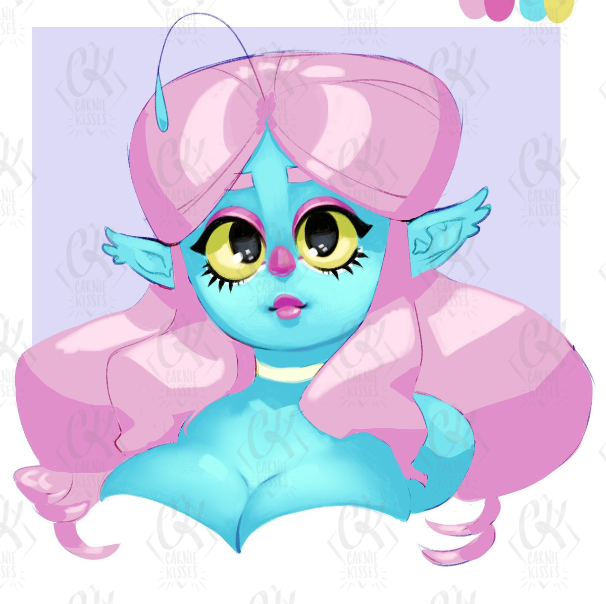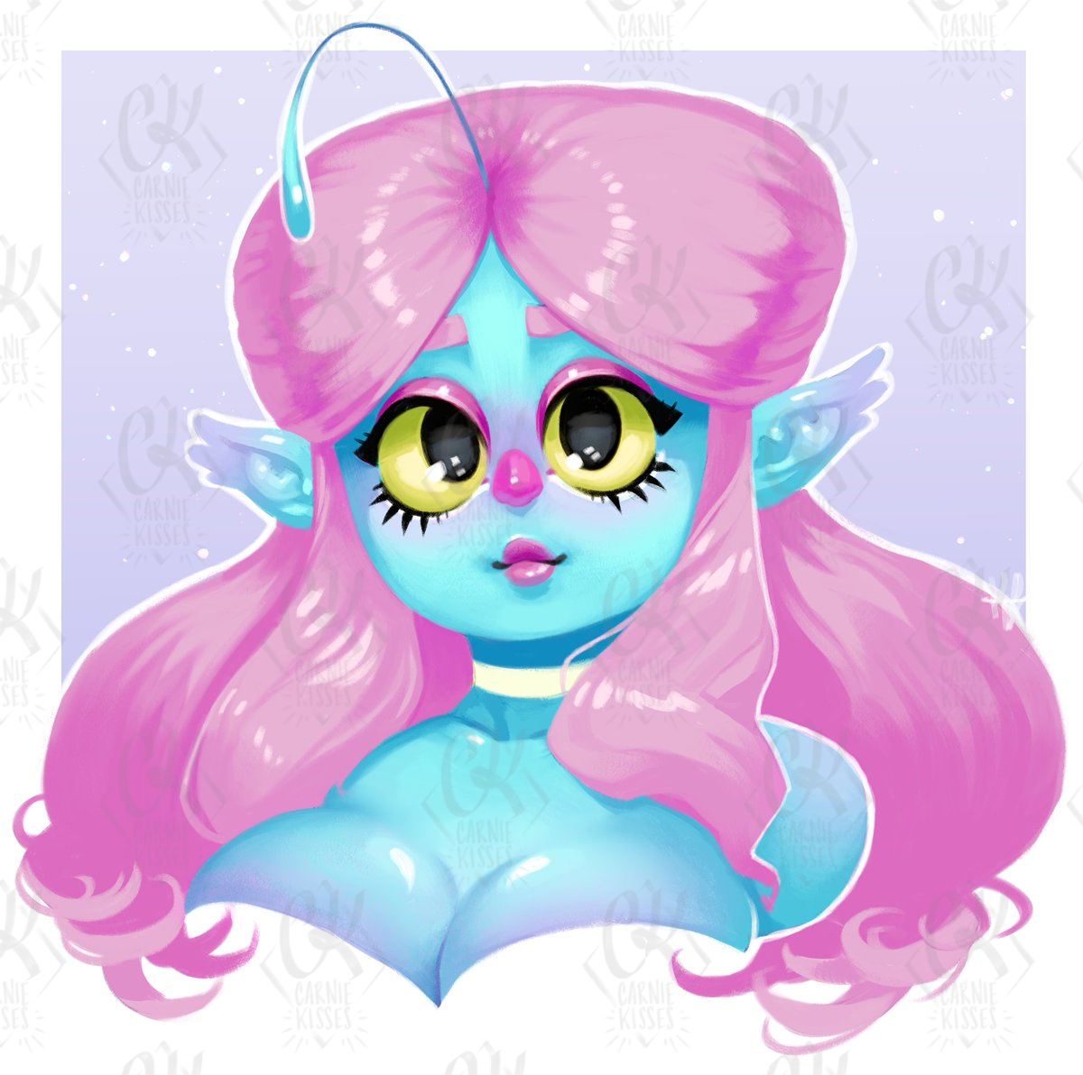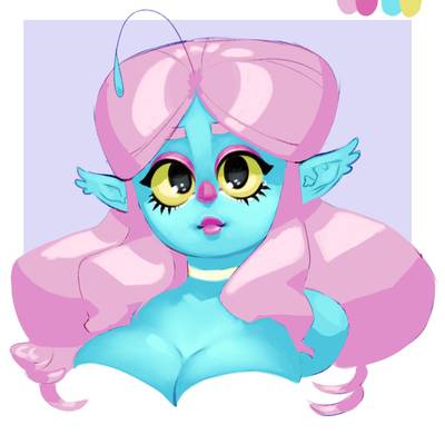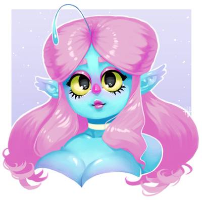 This is Iivi (pronounced Ee-vie), she's like a space babe archetype, with a little spaceship and everything. I care her a lot I hope u like her :(