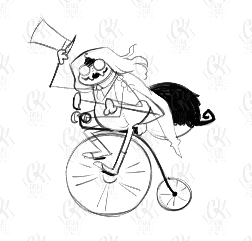 out of good ideas atm so have a stupid doodle of Gomer rolling around on a penny farthing