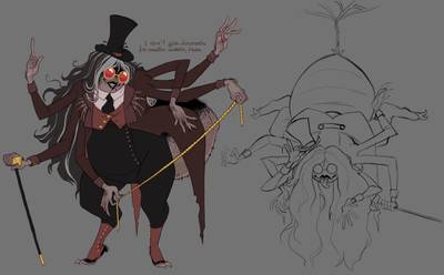 Small design revisions, all because I wanted the feet to reach the silk and spin it, as spiders do. The short legs were cute but ah