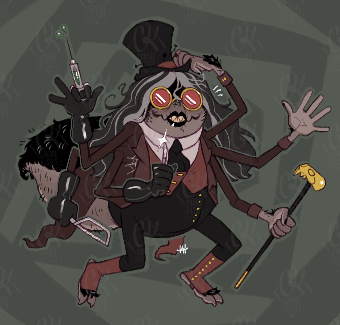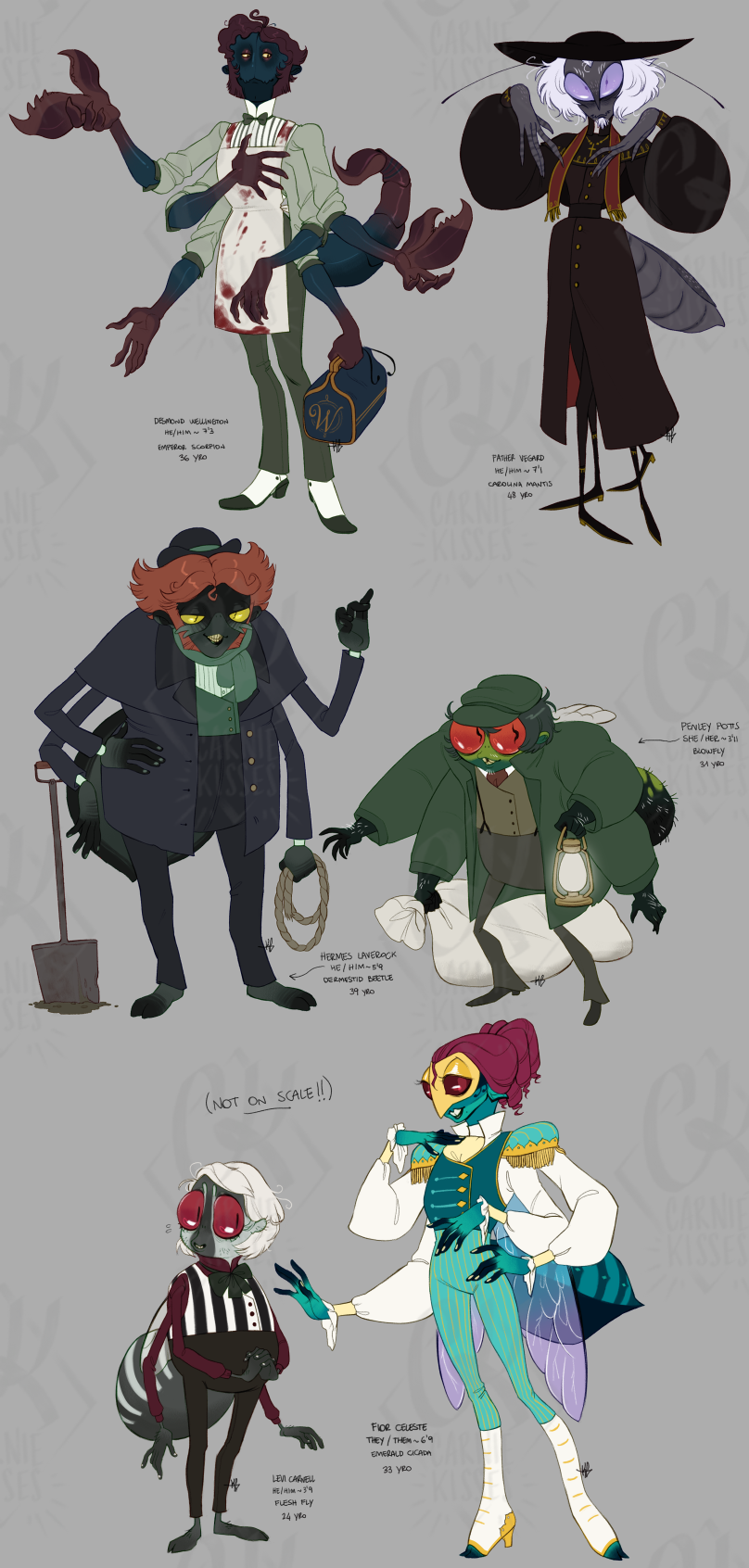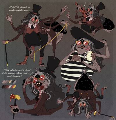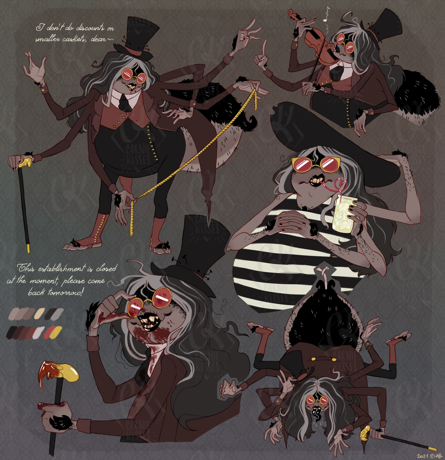 Redrew a bunch of doodles. Meet Montgomery, mortician and coffin maker, big fan of all things macabre. Most definitely has a bunch of curio cabinets filled with oddities strewn across the house.