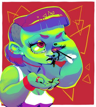 I'll eventually give her a fixed color palette in the future! Right now I'm just having fun