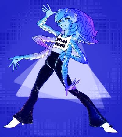 Just a simple outfit ref, also showcasing his new body shapes in one fell swoop: now he's got thinner, longer limbs, and an oblong cephalothorax