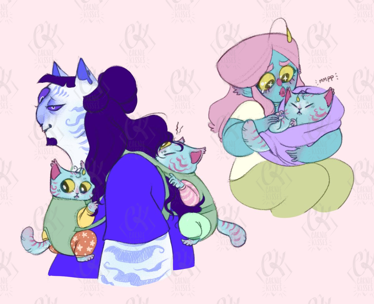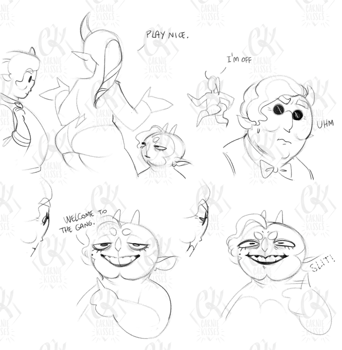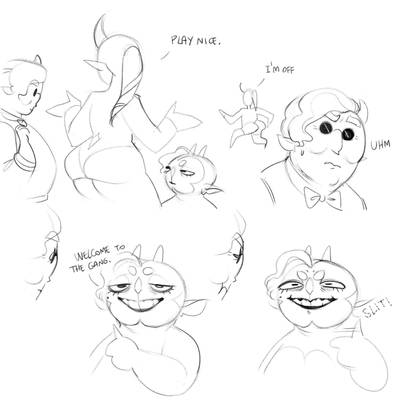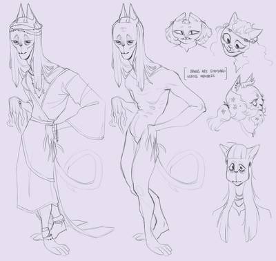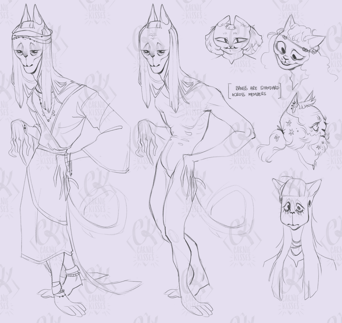 here's a couple doodles tho Tall dude's the cult leader (in the works (Evil)), and also some bg members because I felt like sketching some more cat people. I like the idea of everyone having bangs as a standard cut dk lmaooo