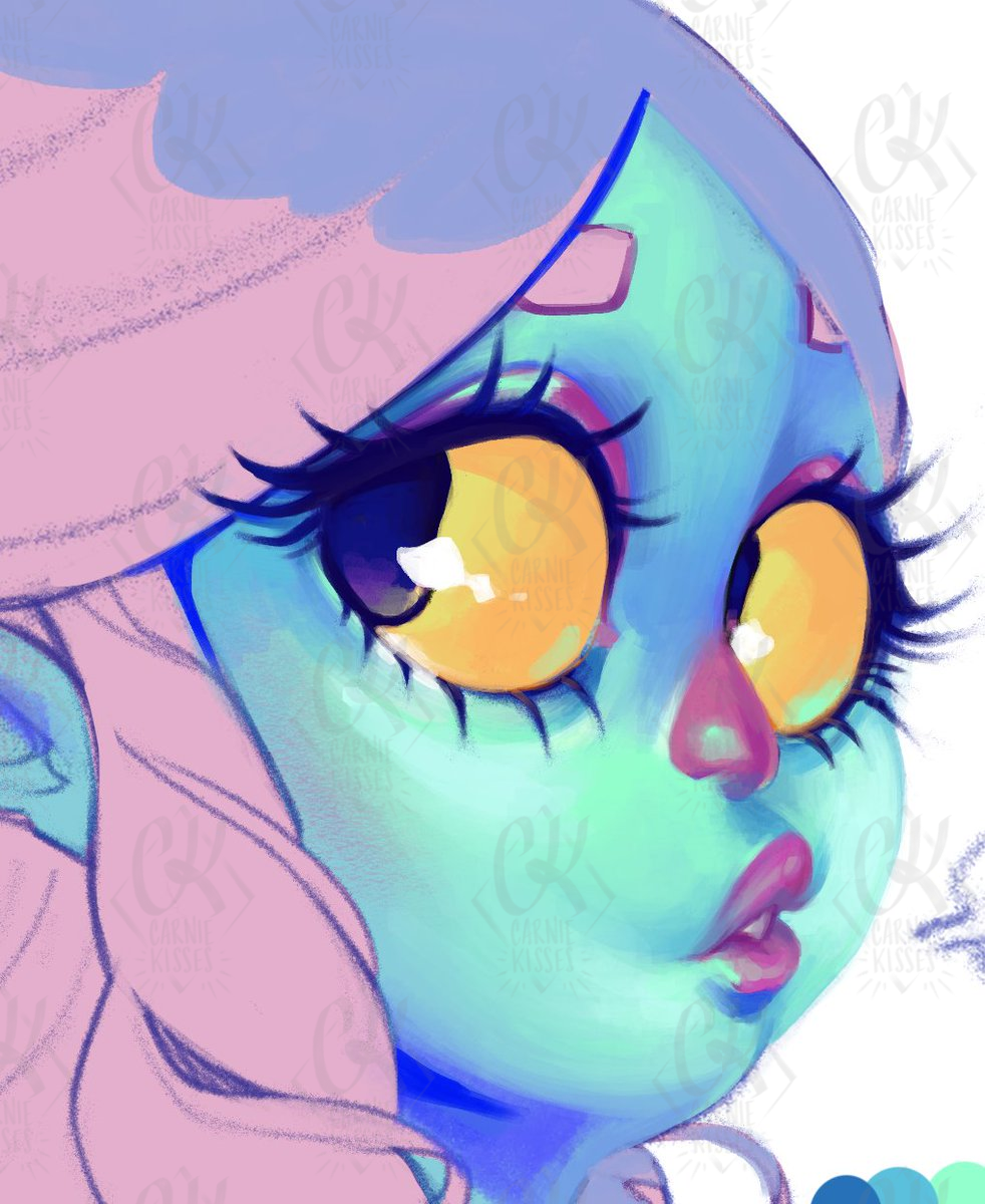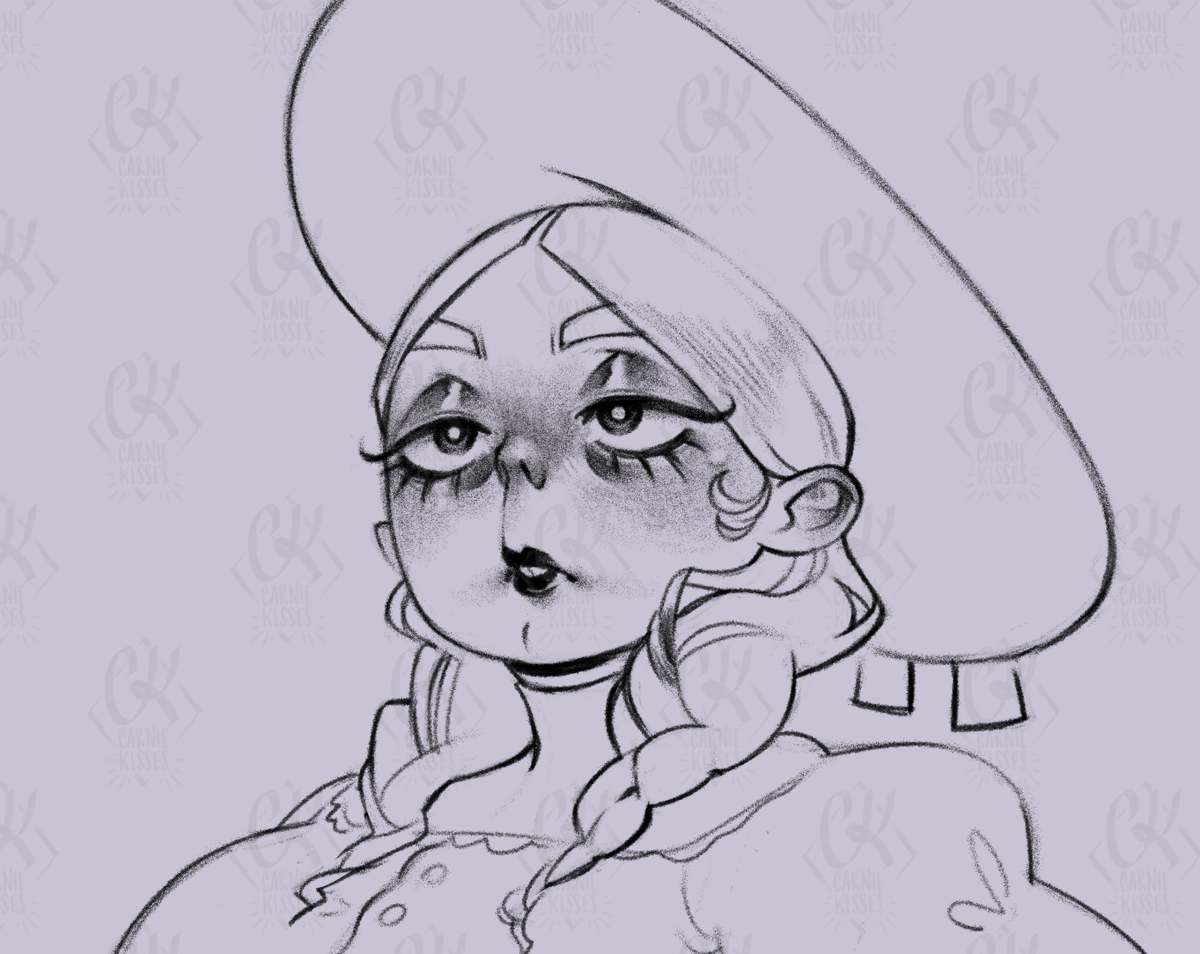 This turned out to be a mistake, because I now have to deal with shading the goddamned hair and I'm having the opposite of fun with that, so I'll stop for now