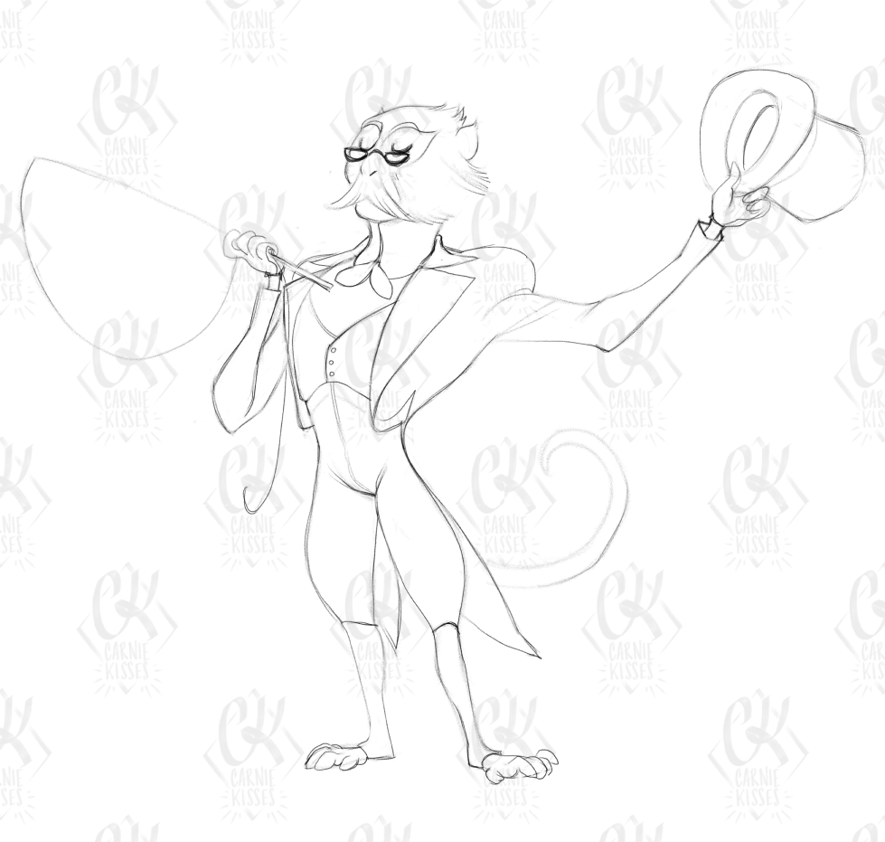 i drew a cagliostro with nice legs but i had no outfit ideas so he must wear this ugly banana hammock i found on google images, for banana protection
