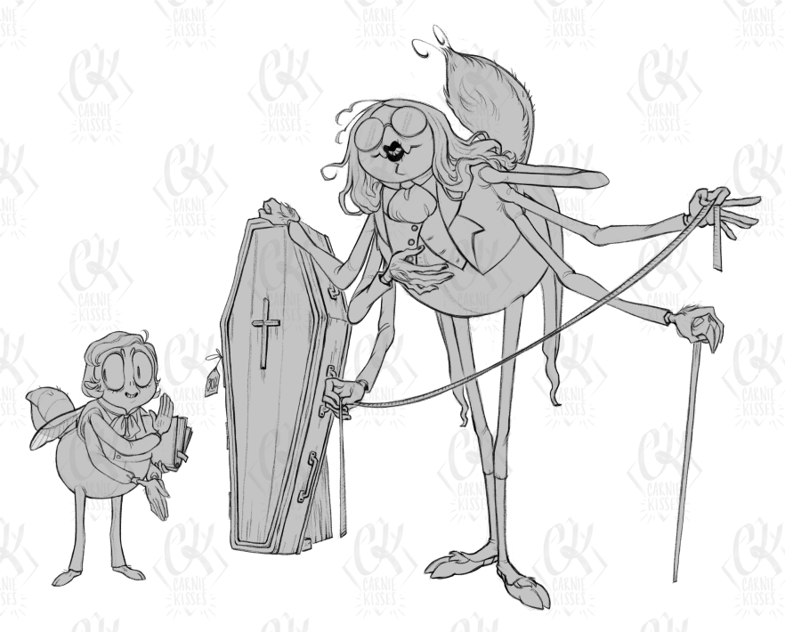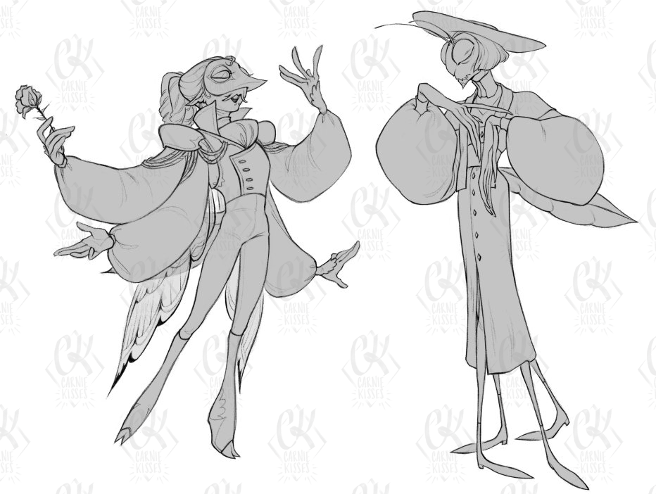 ok so. of 4 figures, i redrew all the pairs of wings from scratch on each, relined 3, now I need to color all of them
