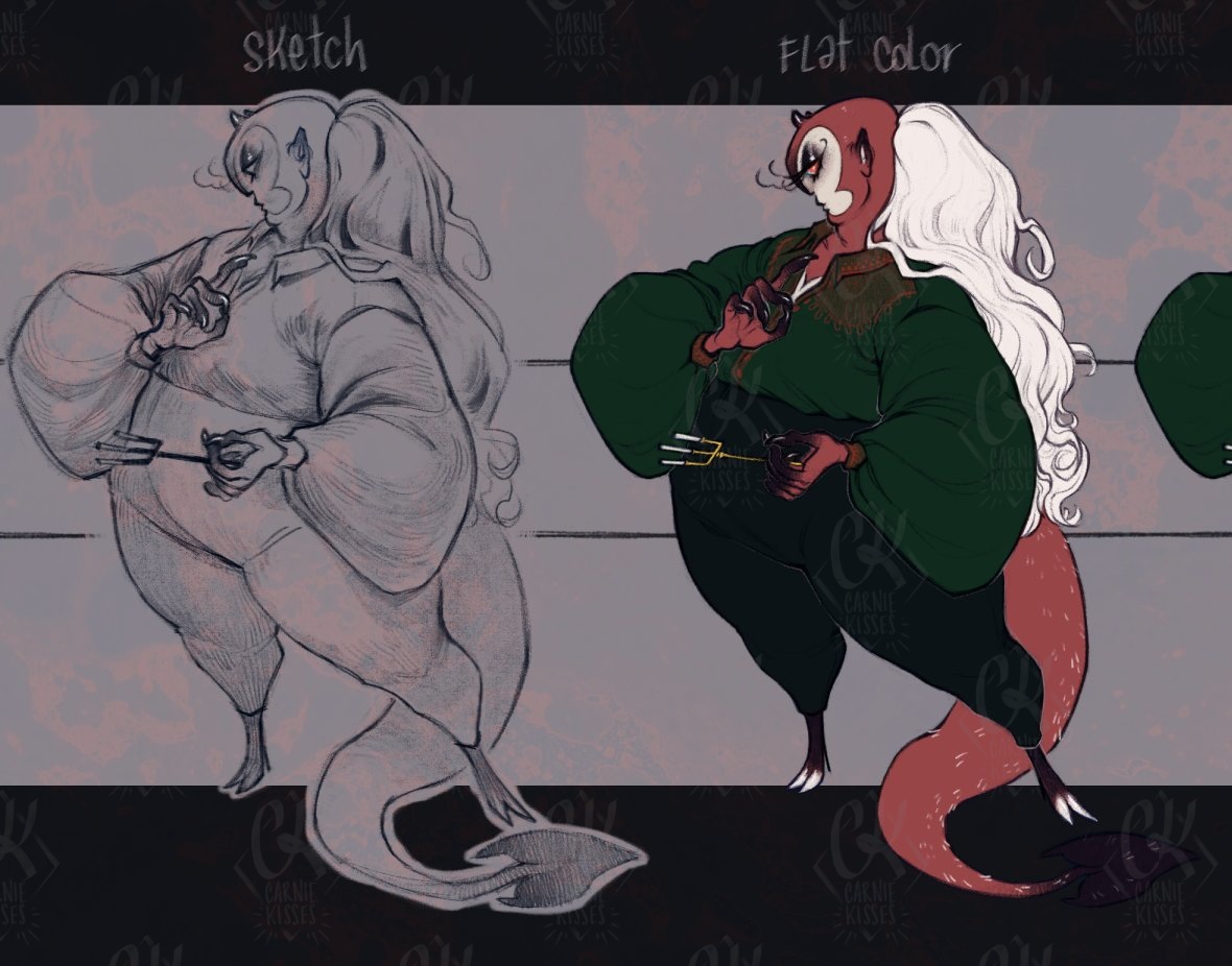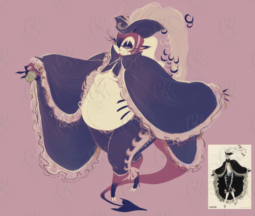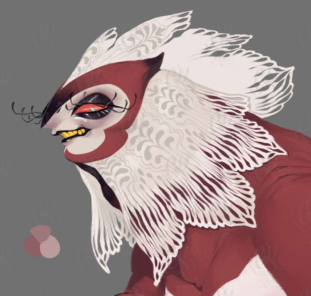i wanted the crest to be reminiscent of lace while also looking like a feature an animal would have, trying to figure out those darker markings still