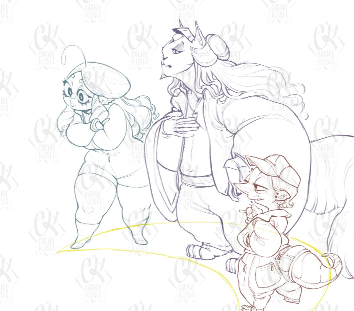 still no colors BUT I finished lineart on all the due guys, so that much is behind me at least