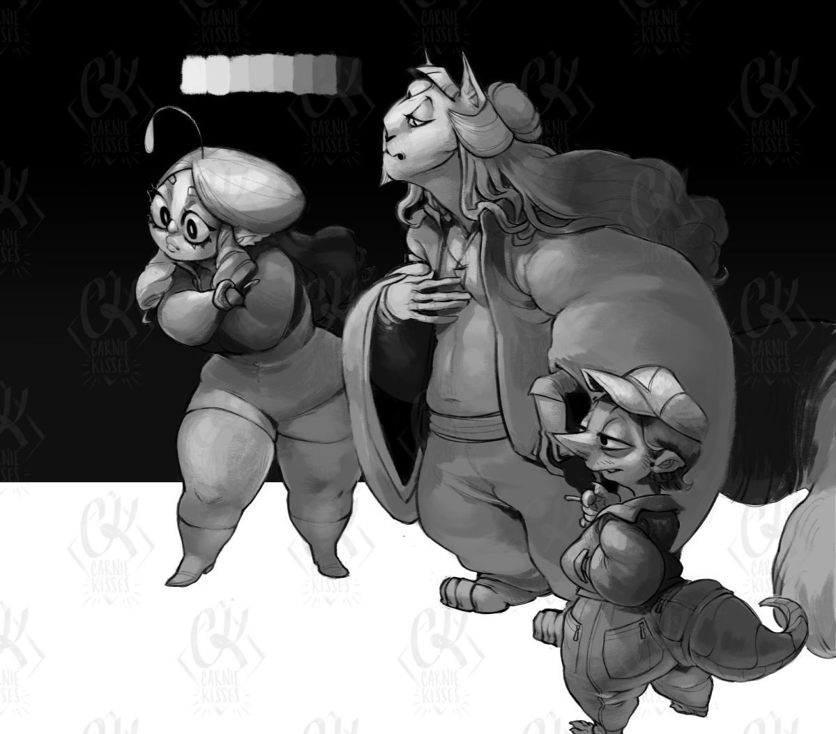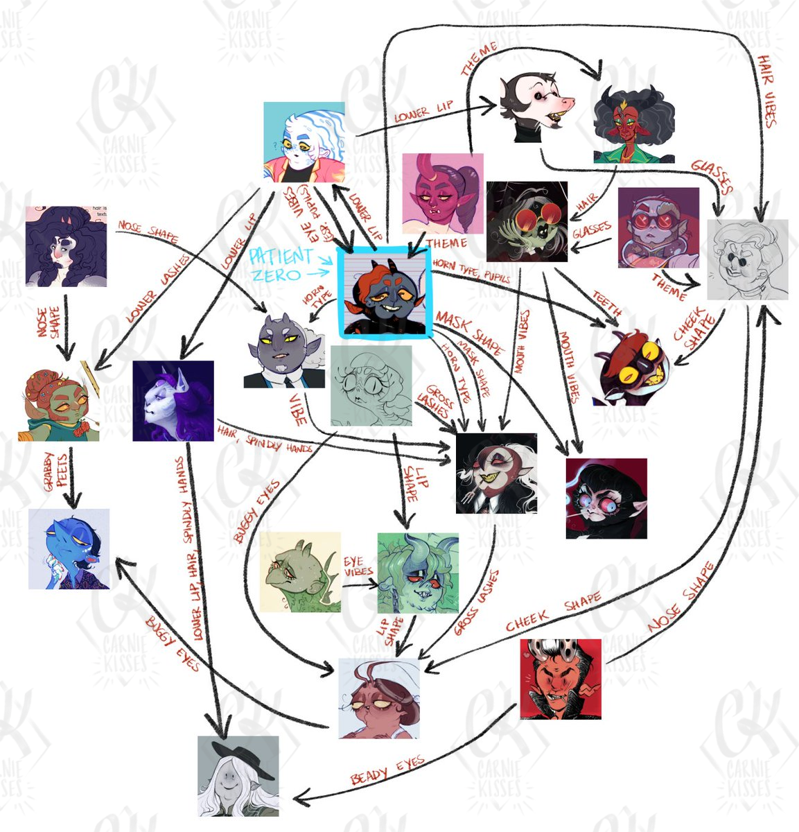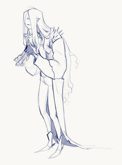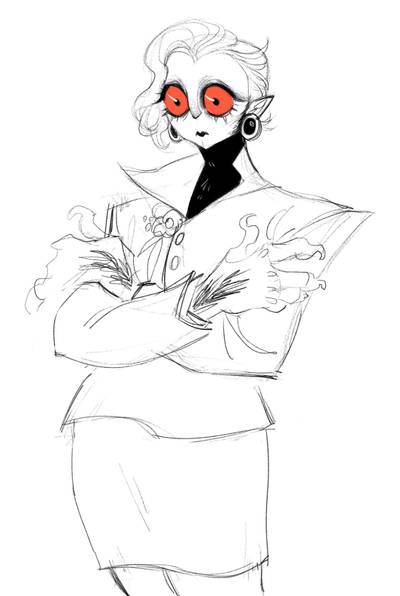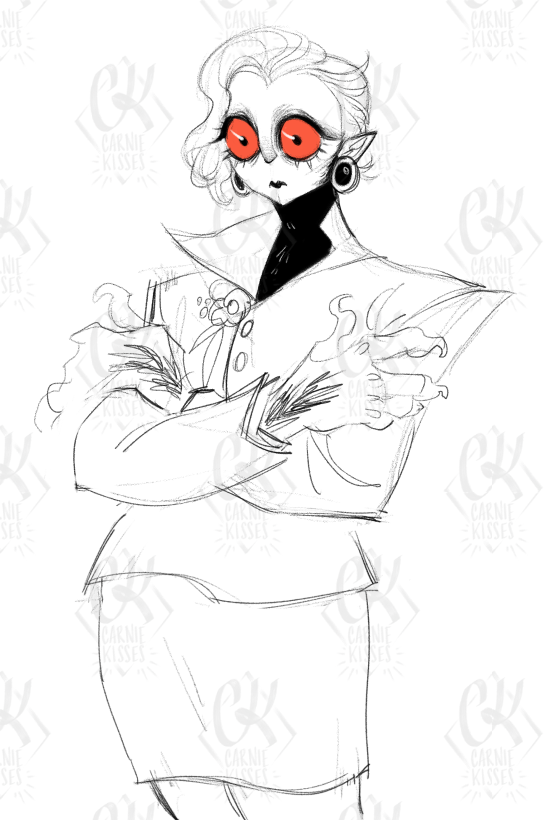 working on this vamp sheet is fun because i'll doodle a guy and realize they're too Normal so I'll move them up the scale of normalness