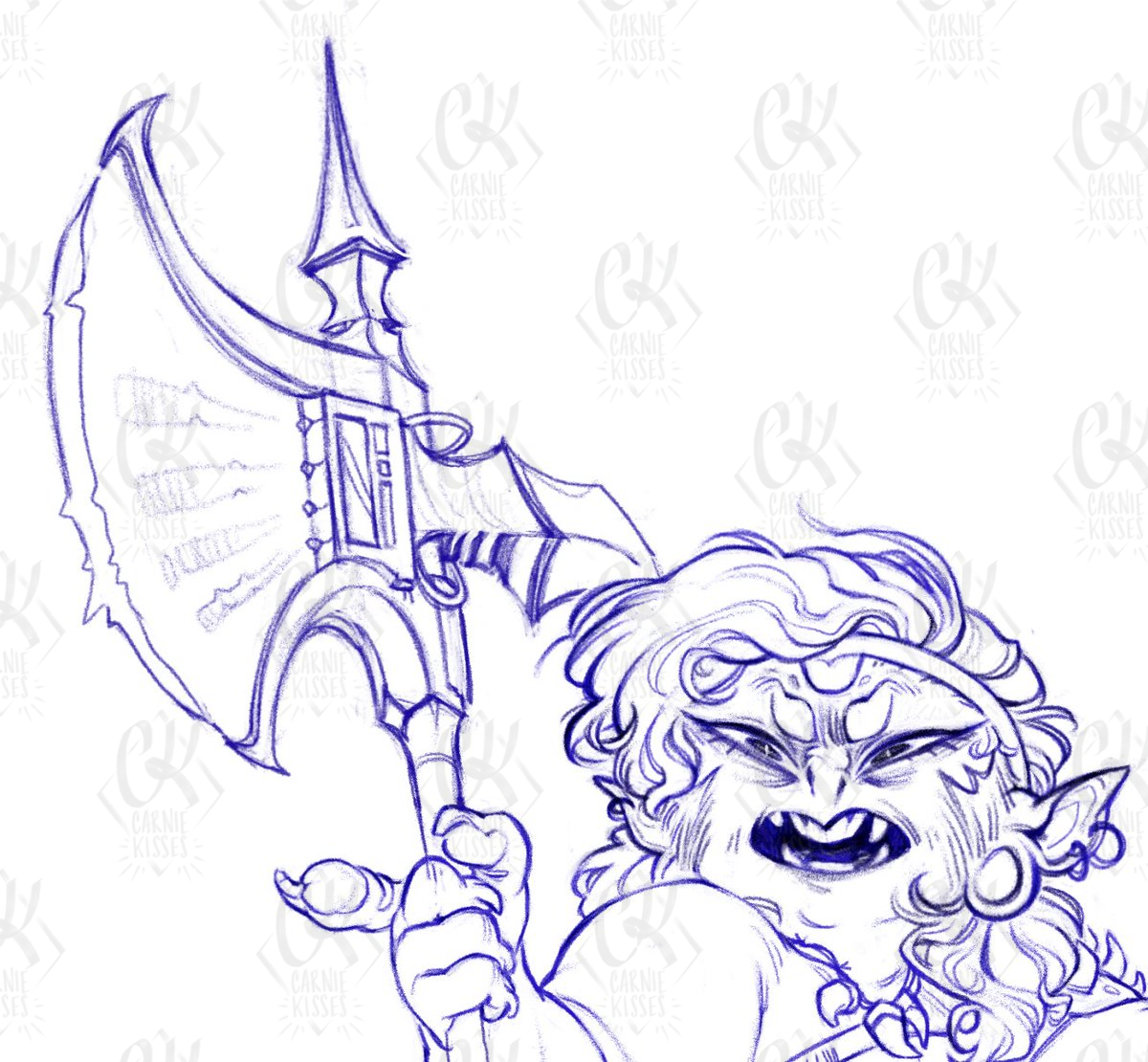 I've been struggling with finding a neutral but interesting enough pose for the price table, one that I can sketch, line, shade, and then paint. think i got it now