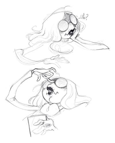 when i'm too tired to work on anything but want to draw my art reverts to its basal state of being (draw a cunty creature with no chin and really stumpy legs)