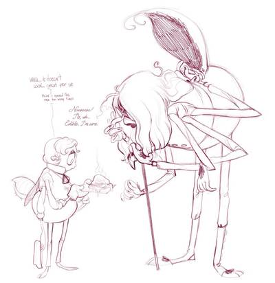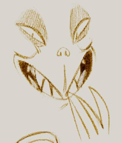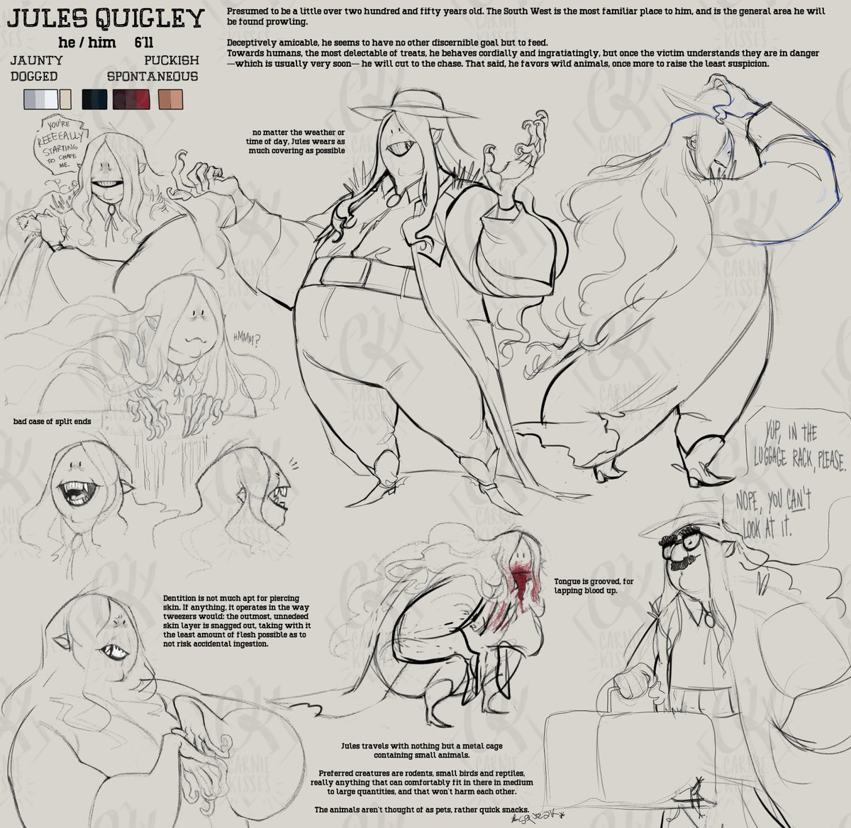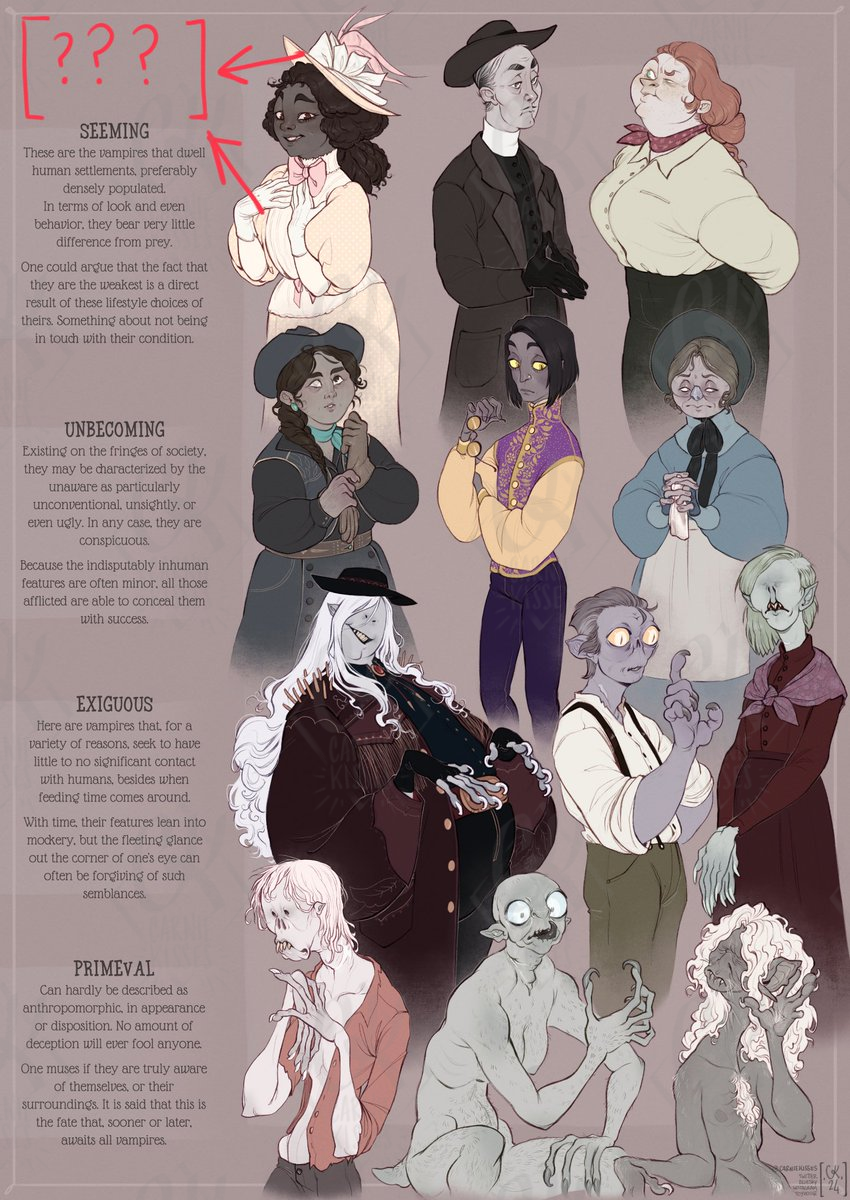 i briefly thot of a 'glamour' feature for vamps, meaning a particularly messed up one can, for a short period of time depending, alter how others perceive them in order to deceive/put at ease/whatev. anyways this is jules' (the glamour doesn't necessarily look like the way they used to before turning)