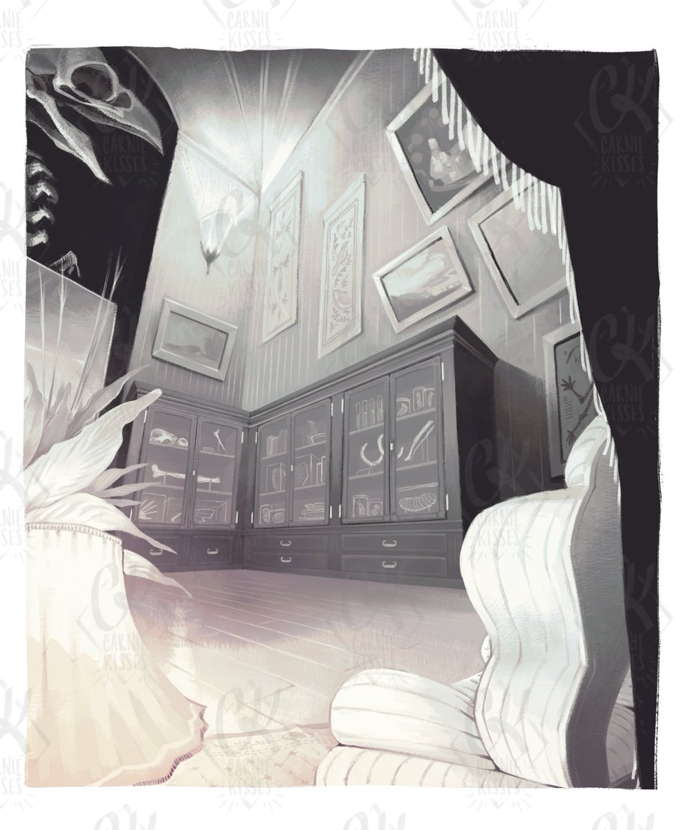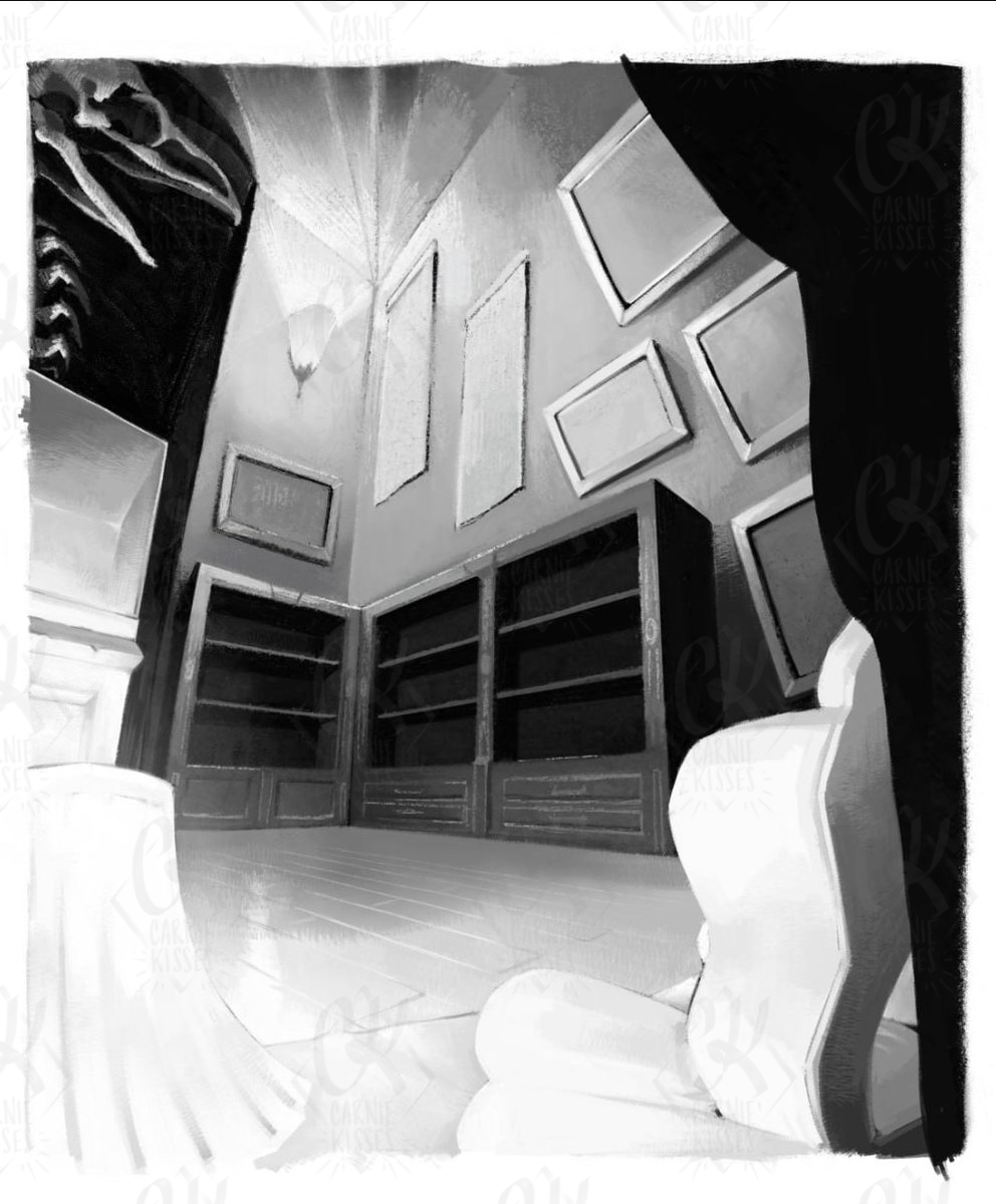 one of the paintings is blank because there'll be the standing display in front of it anyway