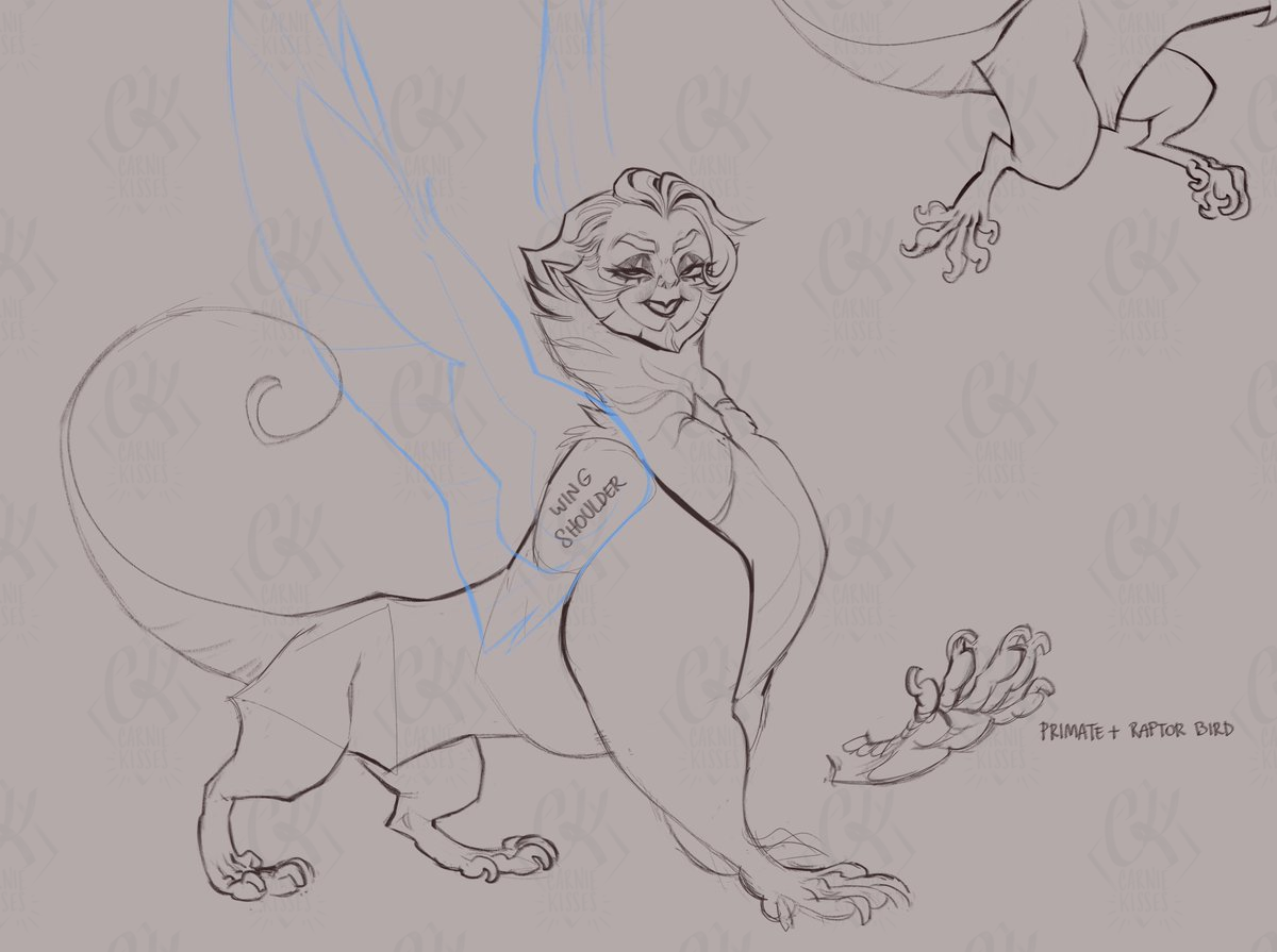I think I want them to be more primate-like while still retaining raptor bird functionalities. He always had those feral monkey vibes anyhow, looking at baboons specifically