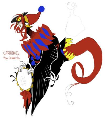 don't mind the stomach details, i'm not sure abt them bc the fleshy puppet look on these ppl is deliberate, but i'm also trying to introduce small arthro characteristics that won't clash w that