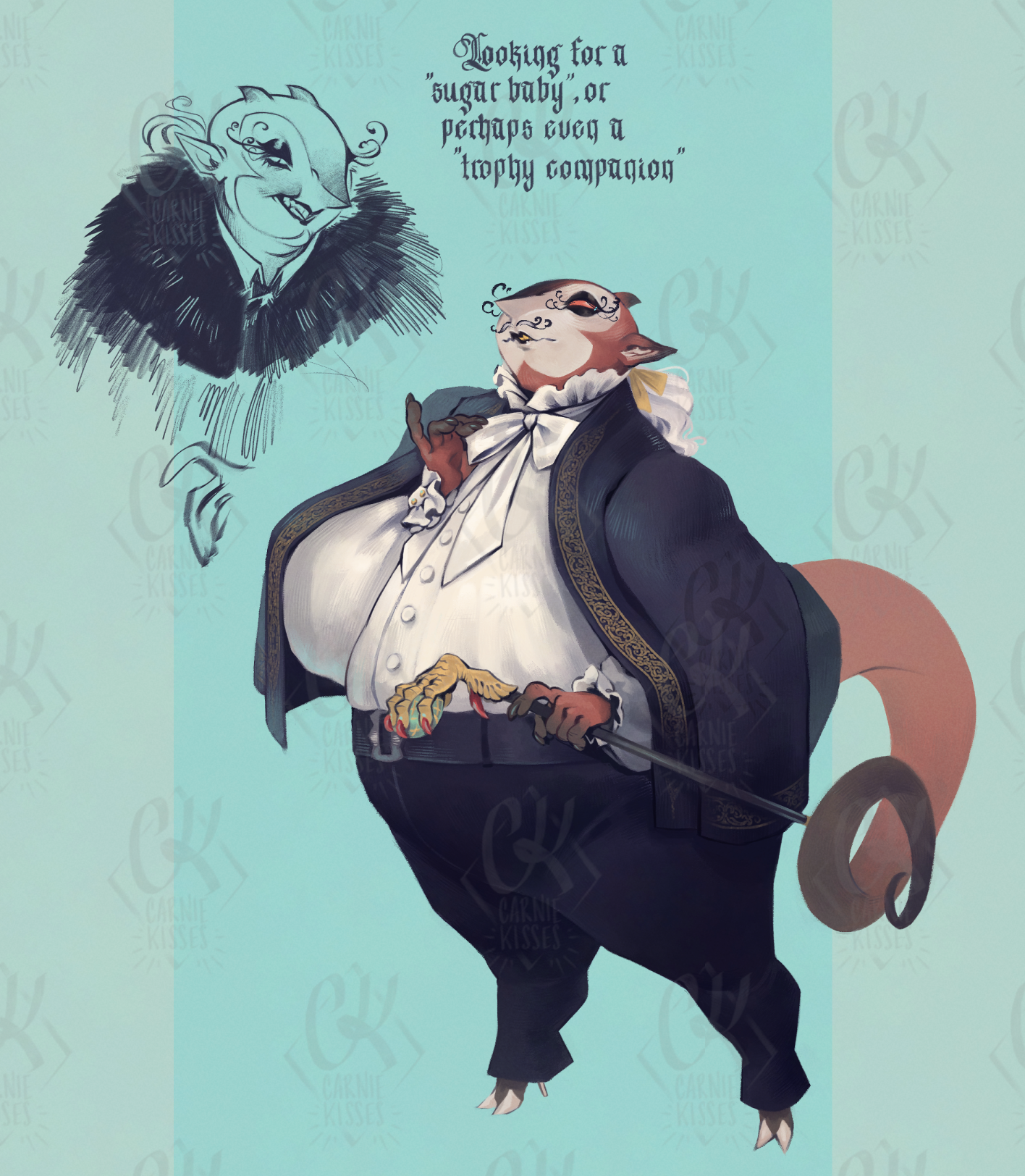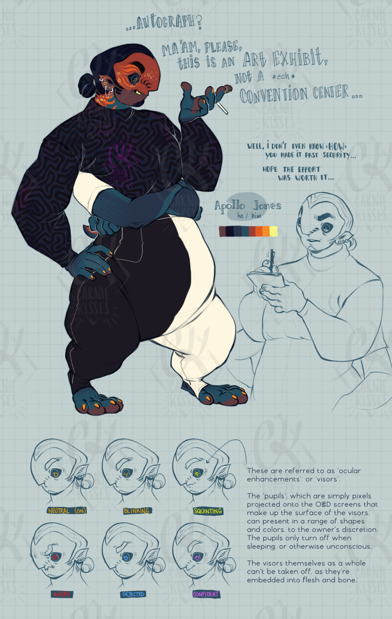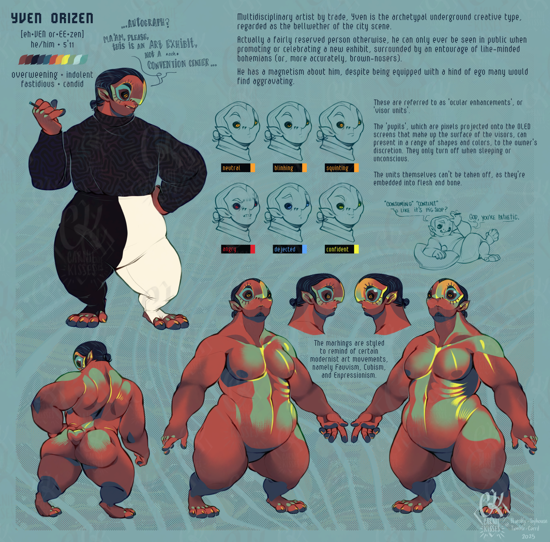 context: I am overhauling his design inbetween commissions and also I've been consumed with VN brainrot