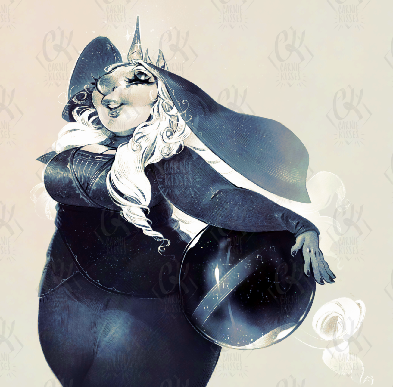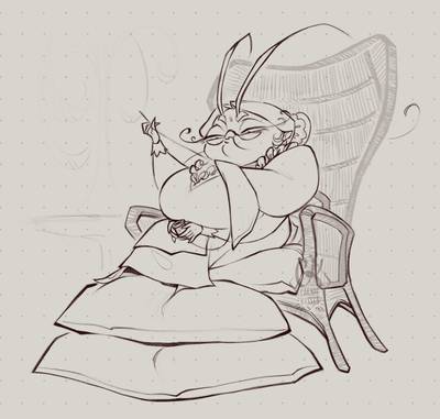 I needed some sort of inconspicuous visual cue that she's supposed to be magically really old, so I gave her lighter streaks in her hair, as opposed to it being a solid white, and therefore looking like it was just that like, genetically